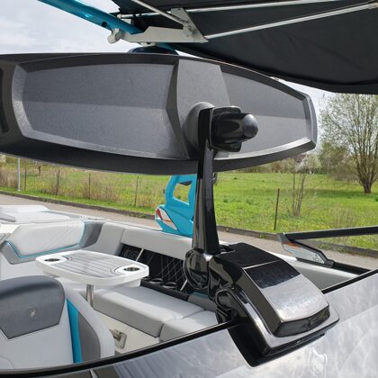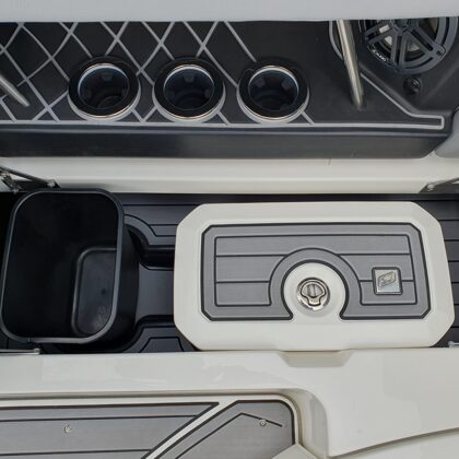 Keyless Ignition System, Electronic Shift with Throttle Control, SeaDek Flooring, Removable Boarding Platform, Rear View Mirror, Adjustable (Forward/Backward) and Rotating Driver’s Seat, Flip-Up Driver’s Seat, Adjustable Steering Wheel, JL Audio System Bluetooth Connectivity, 4 x USB Output, 1 x Auxiliary Input, 3.5 mm, 3 x 12V Sockets, 16 x Cup/Bottle Holders, Automatic Bilge Pump (2), Storage Compartments Under Cockpit and Bow Seats, Large Storage Compartments in the Rear on Both Sides of Engine Compartment, Water Management System, Lockable Glove Compartment, Driver’s Armrest (Right), Opening Centre Windscreen Panel, Self Supporting Hinges for Rear and Side Seat Bases, Removable Bow Seat bases for Storage Access, Special Interior Upholstery Material.