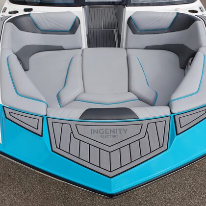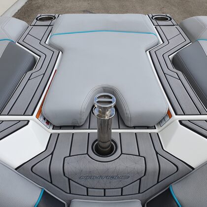 Pull-Out Cleats (6), Removable Cooler, Waste Receptacle, Removable Lean Back (Starboard), Flip-Up Lounge Seat (Port), Fire Extinguisher Automatic, MyNautiqueTM Connectivity Platform,