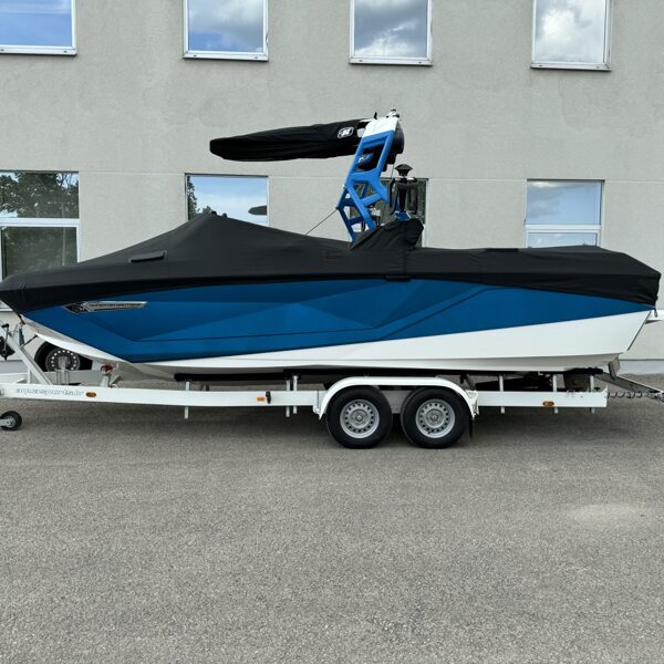 Coastal Package(including: Anodized Structural Components, Freshwater Engine Flush System, Stainless Steel Gas Springs, Sacrificial Anodes), Enhanced Courtesy Lighting Package(Customized Colors on Illuminated Cupholders, Courtesy Lights and Interior Chromax Badging), Bimini for Standart Tower, with Surf Pockets, Nautique Strapless Board Racks (replaces standart Rotating Wakeboard/Wakesurf Racks), Tower Speakers - Prep Kit JL Audio® M Series Studio Elite (Pre-Wired 8 Channel Amplifier), Tower Speakers - 2 Pair JL Audio® M6 Series 880x Speakers, Battery Maintenance System (Integrated Charger - Dual Battery), Package (European Compliance), Cover - Towable/Mooring (Tower Up) with Anti-Pooling System (Standart Tower), GoProTM Ready Quick Mount with Dual Transom Attachments, Heater with Defroster, Lights - Underwater, LINC Panoray - Navionics Maps: Baltic Sea, Nautique Integrated Steering Assist, Phender Pro - Boat Fender Attachment System  (6), Seating - Bow Filler Cushion, Seating - Heated Driver's and Loveseat, Stereo - JL Audio®M6 Series Studio Elite with WavefrontTM (includes: WavefrontTM, Dual 12" Subwoofers, Monoblock Subwoofer Amplifier), Surf Select with The Surf Switch ,Table – Stowable, Tandem Spoke Leather Stearing Wheel, Walk-Thru Air-Dam (Slide-In), Battery AGM (2 pcs), Main Stripe / Hull Rear Color - Masters Blue Metal Flake, Seat Boxing Color – Masters Blue, Tower Secondary Color – Mystic White